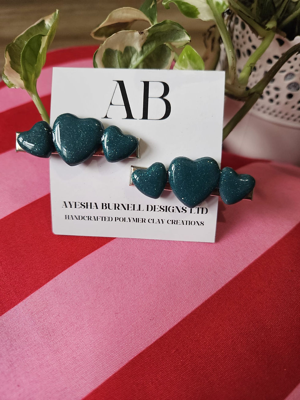 Glitter Teal Heart Hairclips