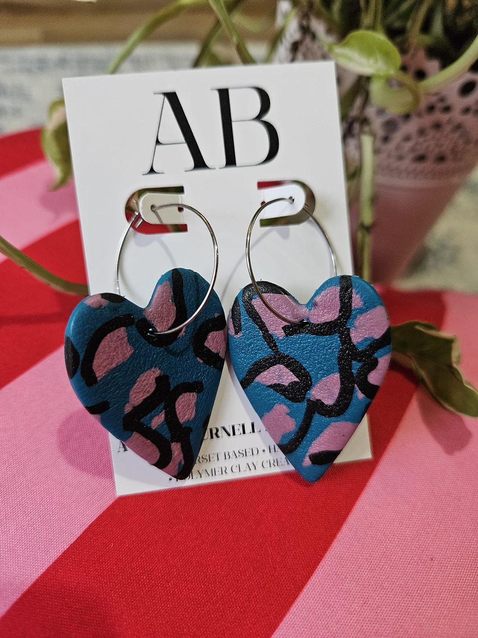 Twin Pack Studs - Black/White Squiggle Hearts and Blue Marble Circles
