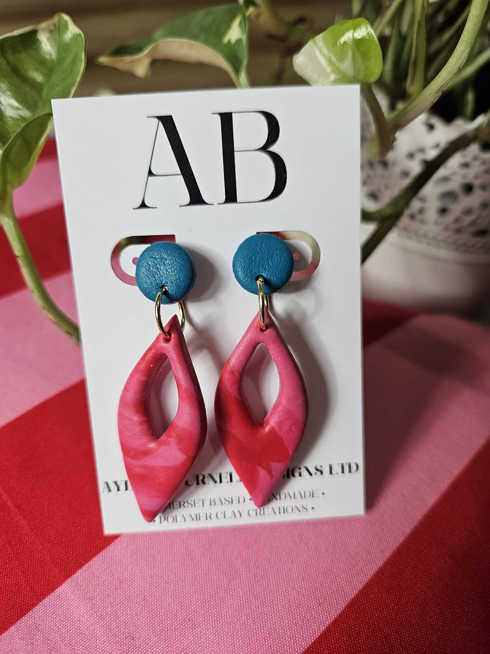Teal Circle topped Red/Pink Slipper Dangles - Gold